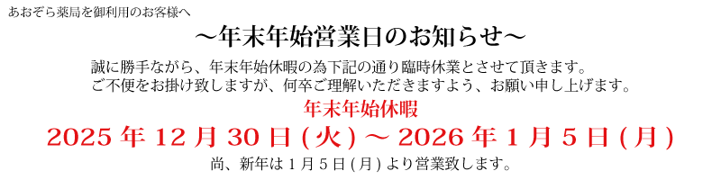 年末年始休業のお知らせ